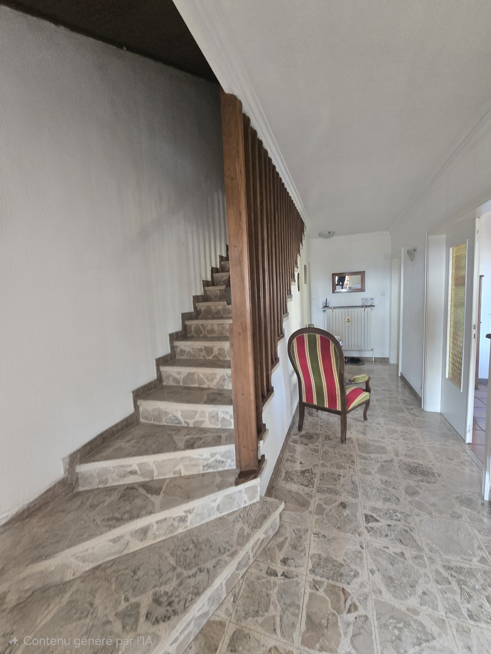 Un escalier mène aux combles, aujourd’hui non aménagés mais offrant la possibilité de créer plusieurs pièces supplémentaires.