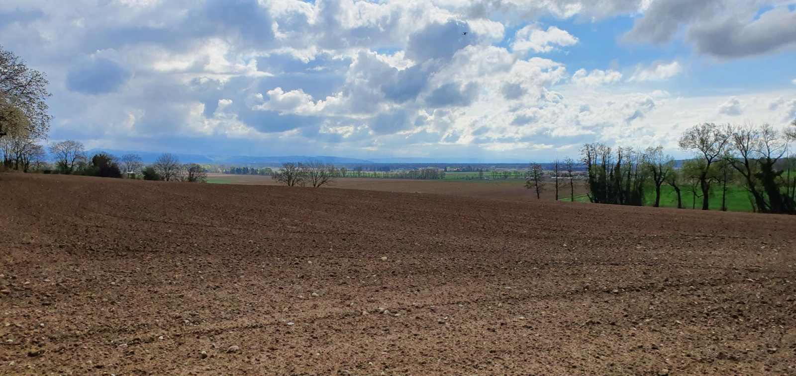 Situation exceptionnelle sur les hauteurs. Au calme, hors lotissement, vue imprenable sur la Forêt Noire et les Alpes, en limite de zone constructible.