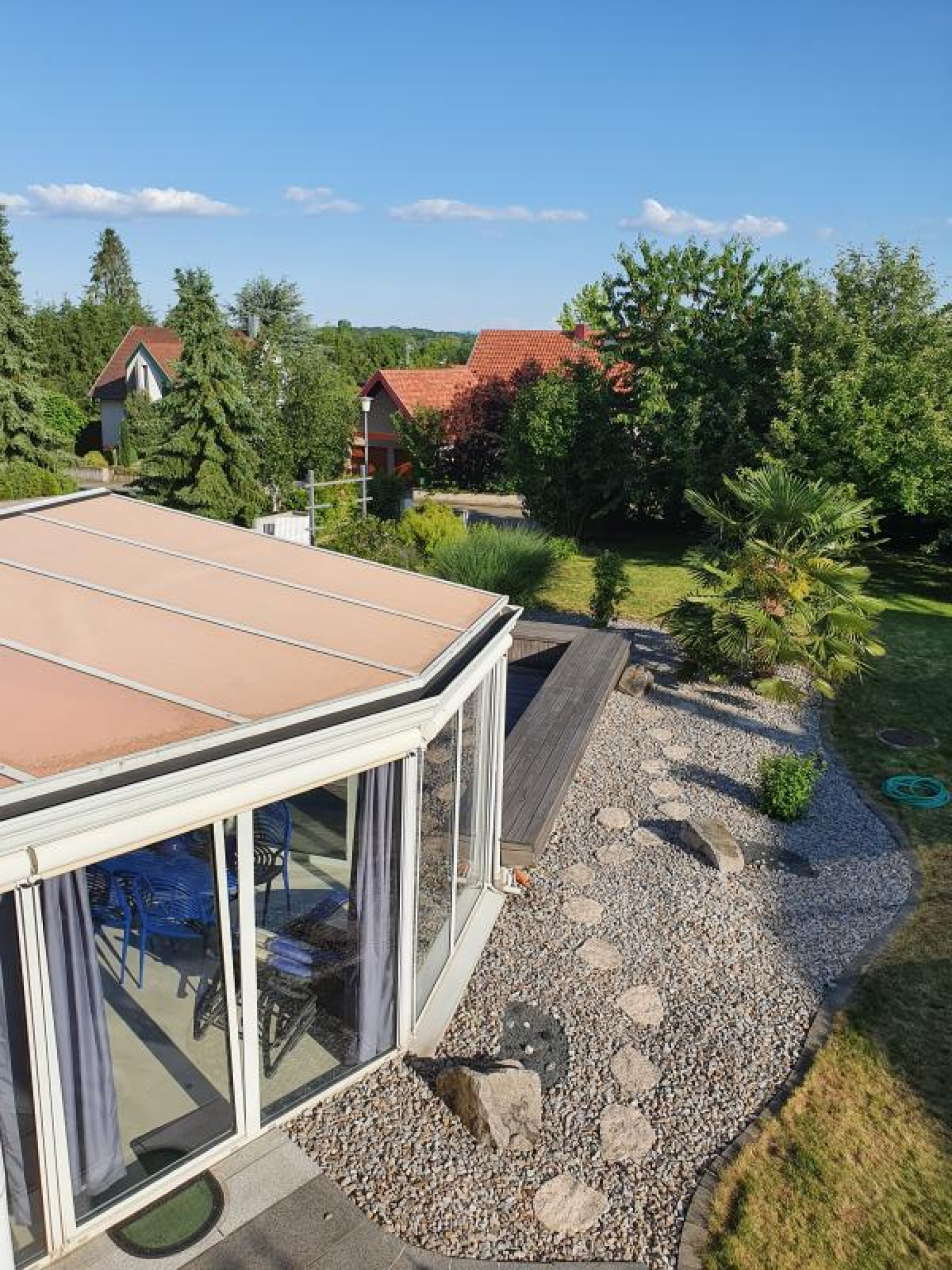Les pièces de vie bénéficient d'une belle luminosité grâce aux larges baies vitrées qui s'ouvrent sur la terrasse, la piscine et le jardin. Vous profiterez également, été comme hiver, de la spacieuse véranda attenante à la piscine.