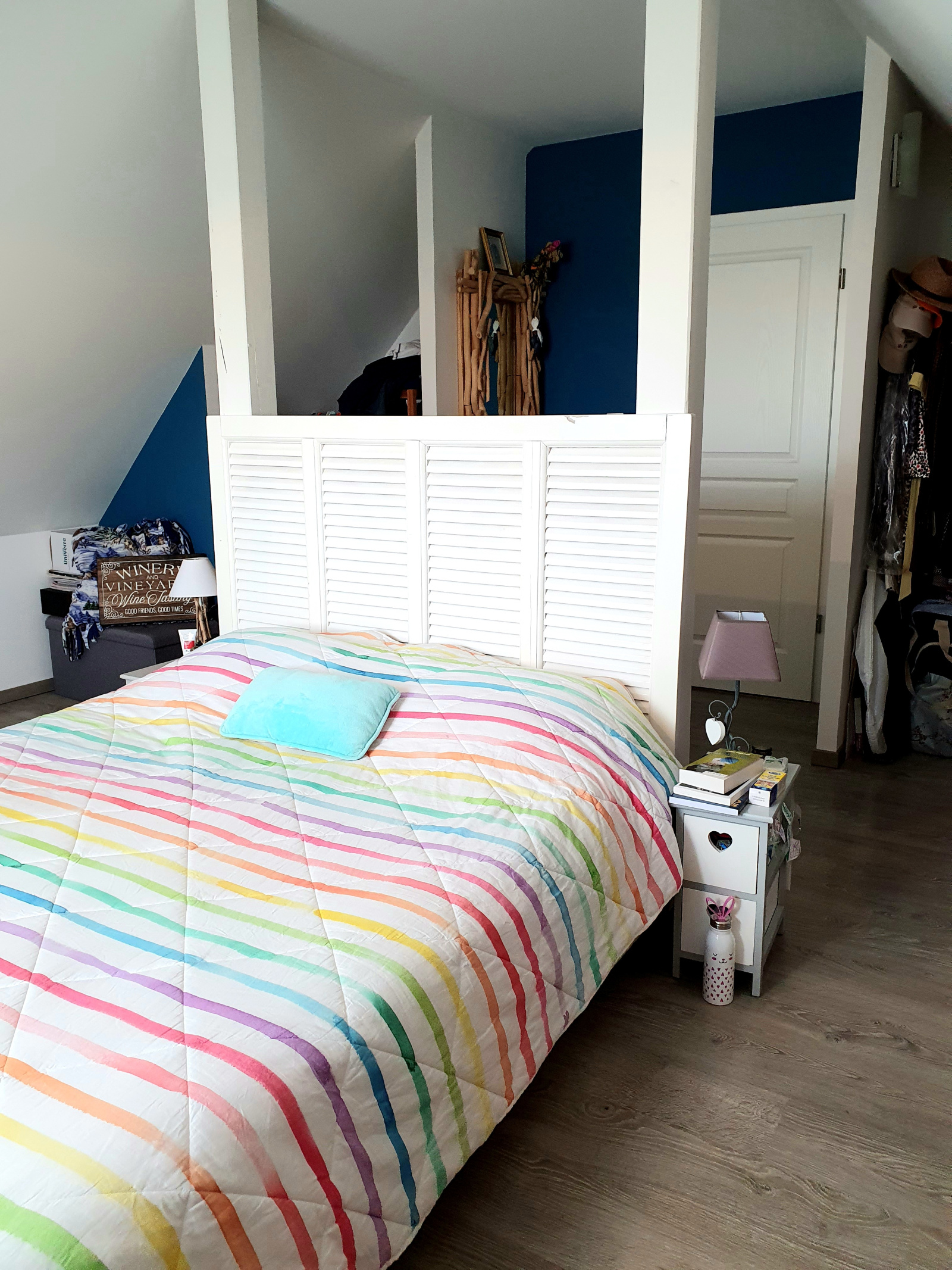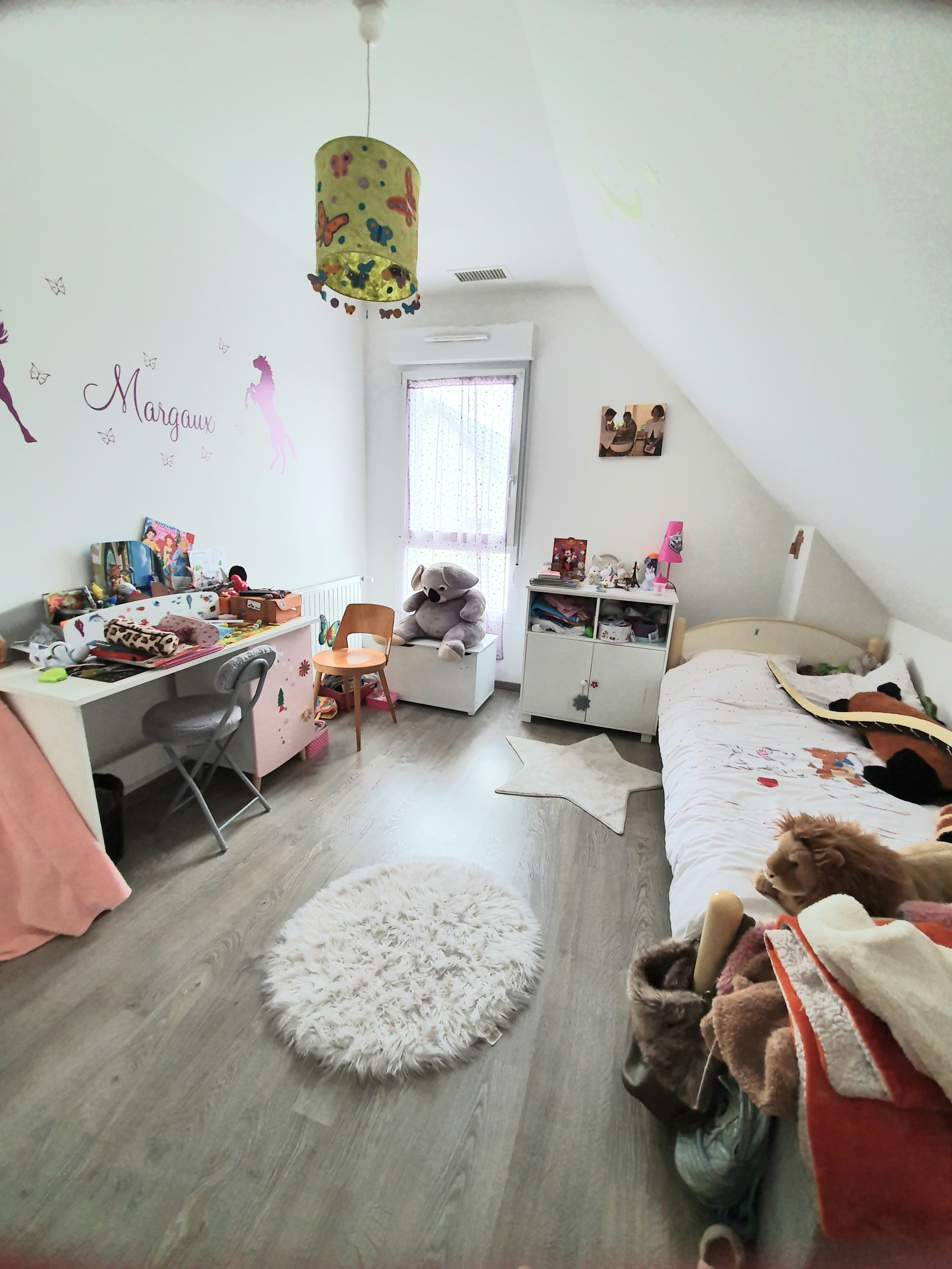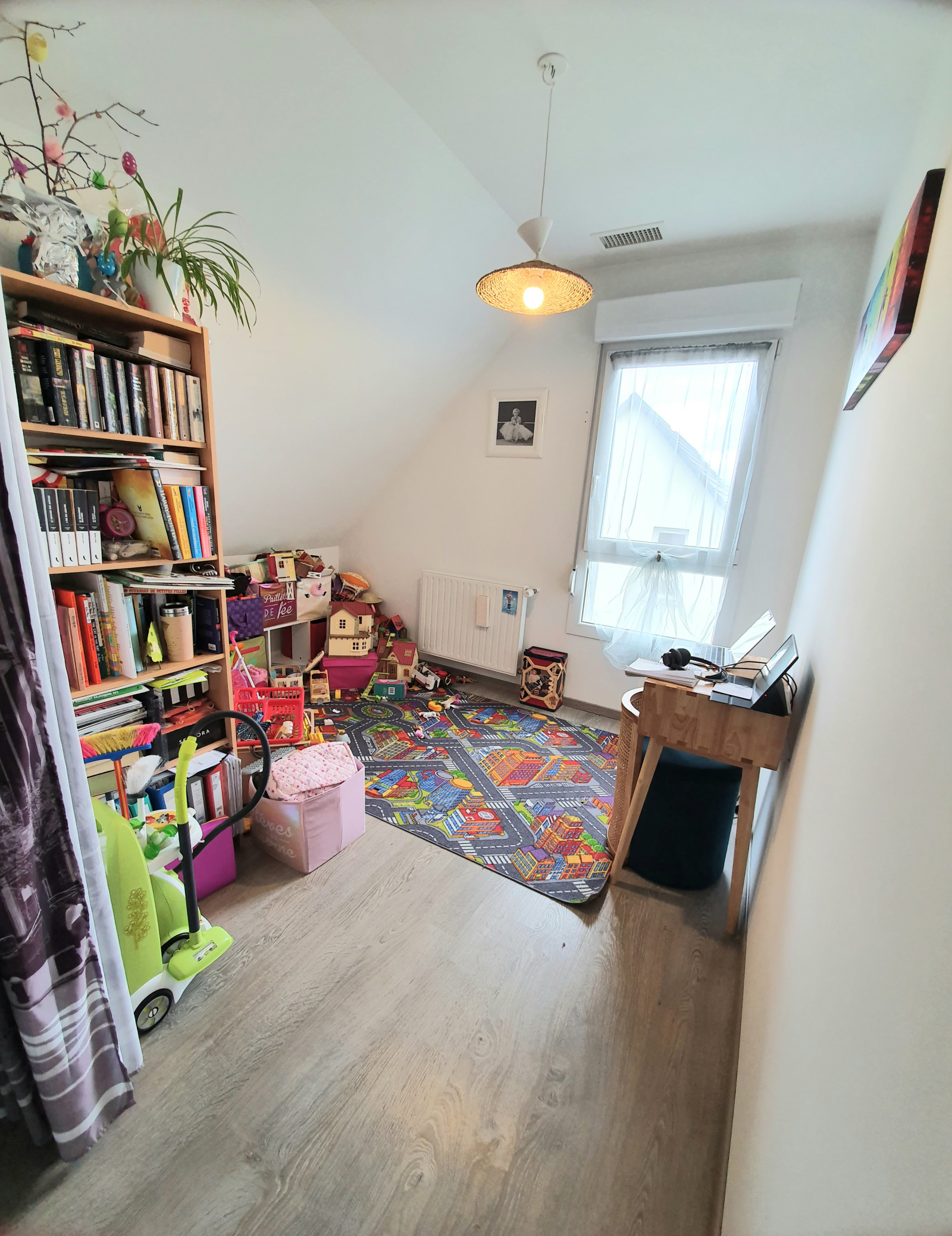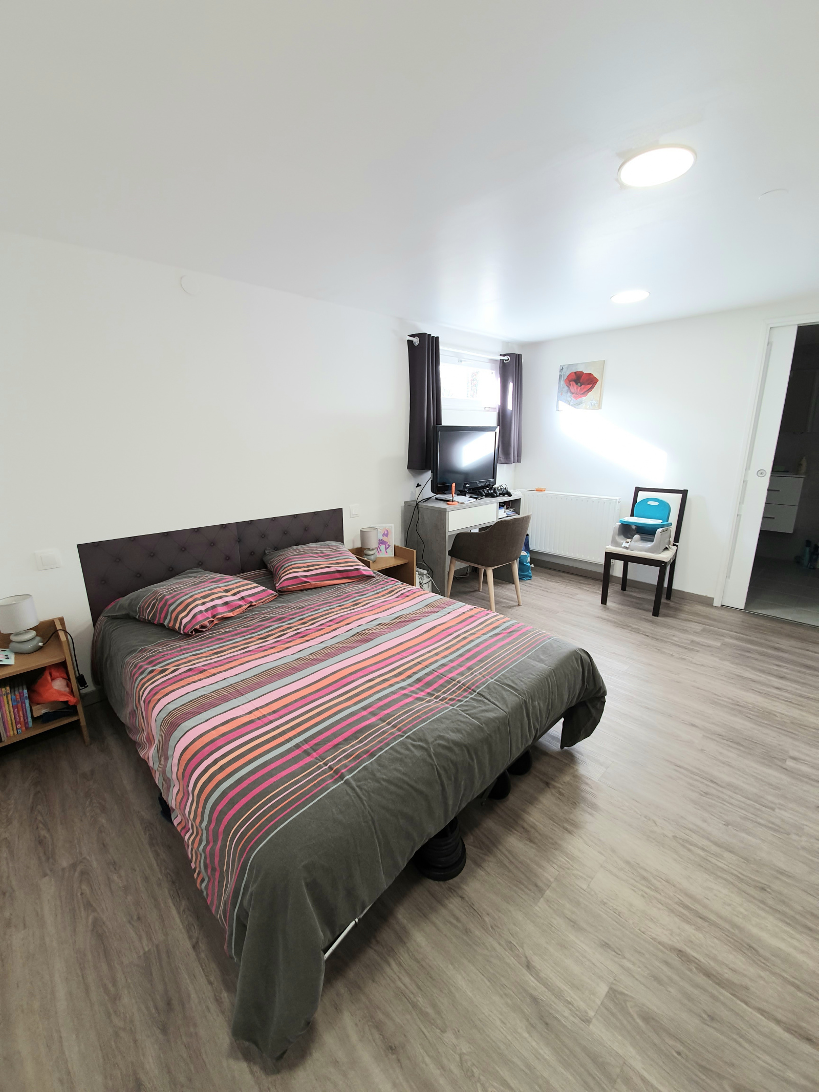En demi-niveau, une grande chambre parentale et à l'étage, deux chambres enfants, une salle-de-bains, un espace bureau, une mezzanine et un débarras. Les chambres à l'étage sont climatisées.