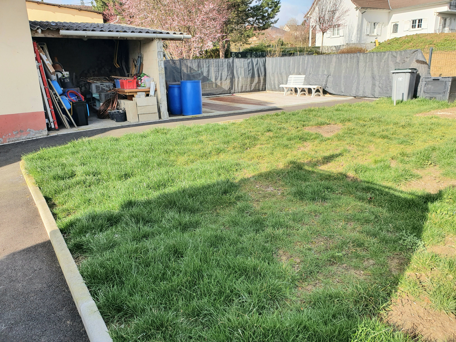 Le terrain de 6.50 ares se compose d’une grande cour, d’un jardin et d’une belle terrasse en bois.
