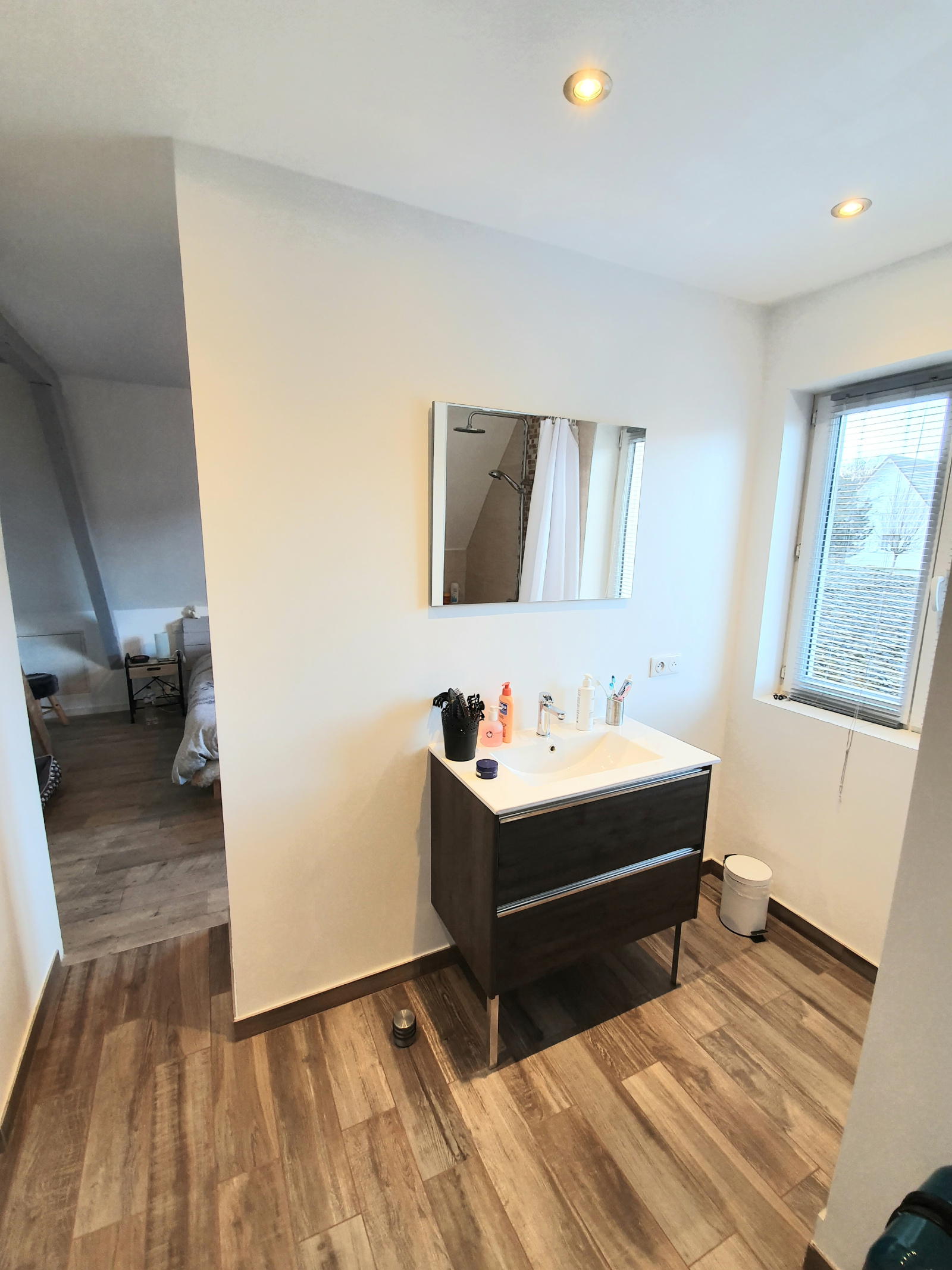 A l'étage, l'espace nuit se compose de deux très belles chambres d'env. 11 m² chacune et d'une suite parentale avec douche et WC.